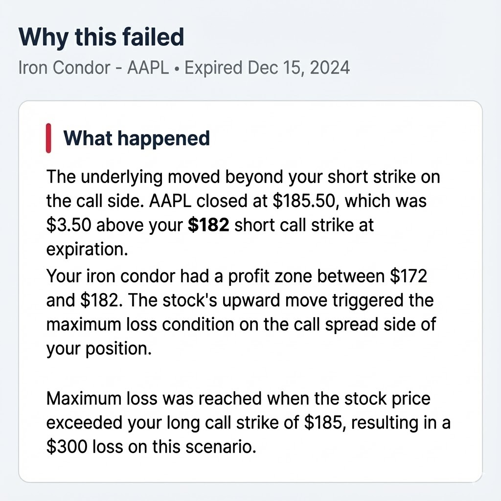 Every outcome displays the pricing mode, IV inputs, and timestamp. No hidden variables.